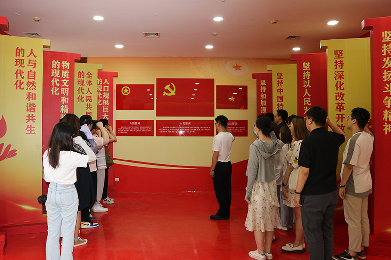在天津團(tuán)市委宣傳部有關(guān)領(lǐng)導(dǎo)的帶領(lǐng)下,團(tuán)員青年們?cè)谑覂?nèi)體驗(yàn)區(qū)和室外體驗(yàn)區(qū)沉浸式學(xué)習(xí)互動(dòng),實(shí)現(xiàn)了從“云端”學(xué)習(xí)到線下體驗(yàn)的延伸,參觀了學(xué)習(xí)展示、領(lǐng)學(xué)互動(dòng)、“紅色家書”互動(dòng)墻、“中國(guó)式現(xiàn)代化”隧道、青年打卡以及戶外學(xué)習(xí)園地等展區(qū),體驗(yàn)現(xiàn)代科技與“讀原著、學(xué)原文、悟原理”有機(jī)結(jié)合的多元化學(xué)習(xí)形態(tài)。