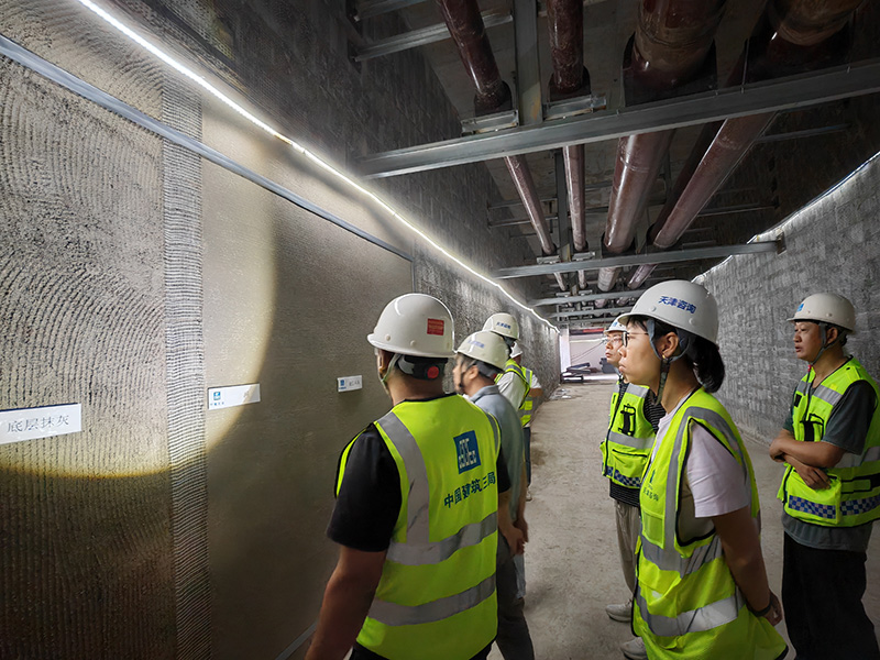 第三事業部作為天津咨詢監理項目建設的主體,堅持高標準推進安全、質量、進度目標,排好“值班表”,當好“監督員”。在天津中醫藥大學第一附屬醫院國家醫學中心建設監理項目現場,項目總監馬輝帶領監理人員深入施工現場,聚焦防水、抹灰樣板關鍵工序,細致核查基層處理、材料合規性及工藝標準,對照規范逐一排查隱患,用專業監督守住質量底線。