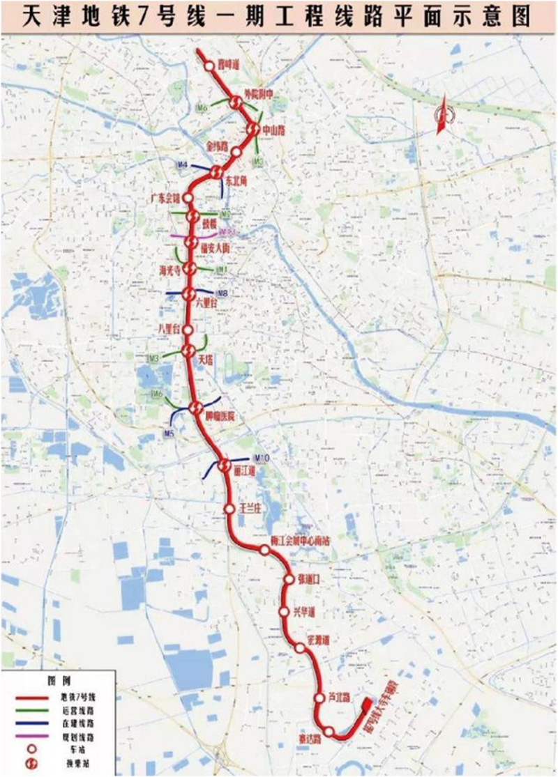 天津地鐵7號線一期工程正線全長約26.53公里,共設車站21座,均為地下站。新建大寺車輛段1座,新建六里臺主變電所1座,與10號線共享主變電所1座。控制中心位于地鐵3號線華苑車輛段內,備用控制中心設在本線大寺車輛段內。項目公司在合作期內負責本項目設計優化、投融資、建設、運營管理、運營維護、更新改造、追加投資以及授權范圍內的非客運業務經營等工作。概算總投資268.97億元。
